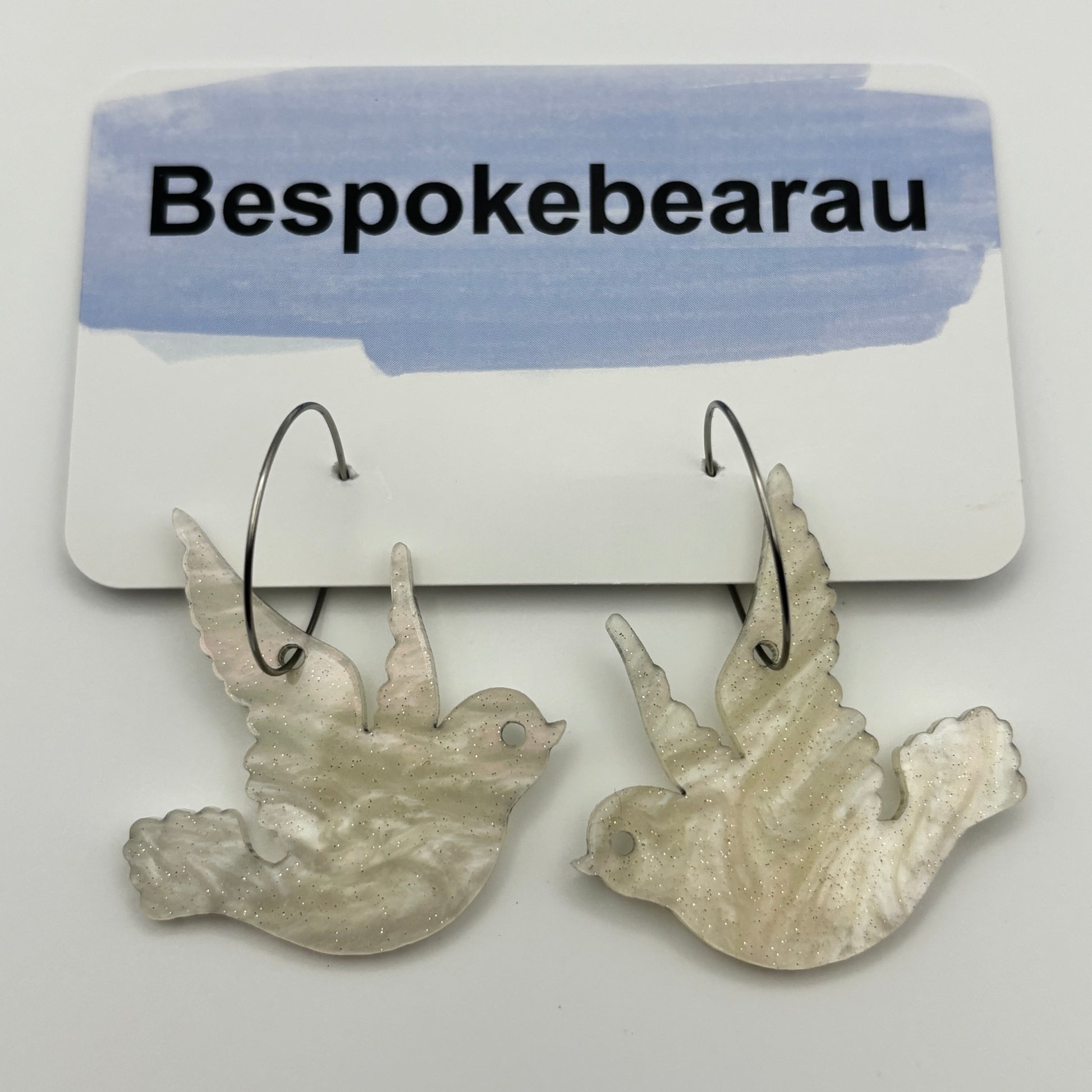 Dove Hoop Earrings | Surgical Stainless Steel & Acrylic | Durable & Lightweight | Handmade Hoop Design