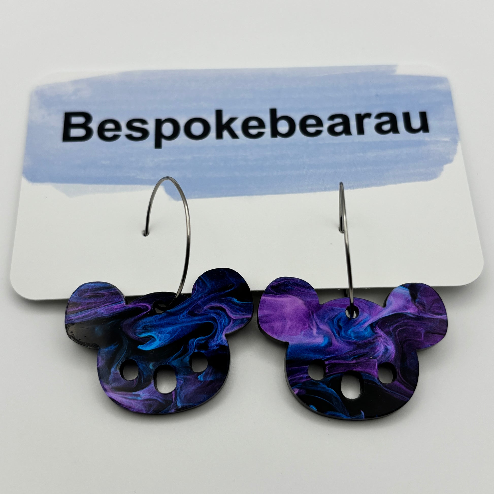 Koala Hoop Earrings | Surgical Stainless Steel & Acrylic | Durable & Lightweight | Handmade Hoop Design