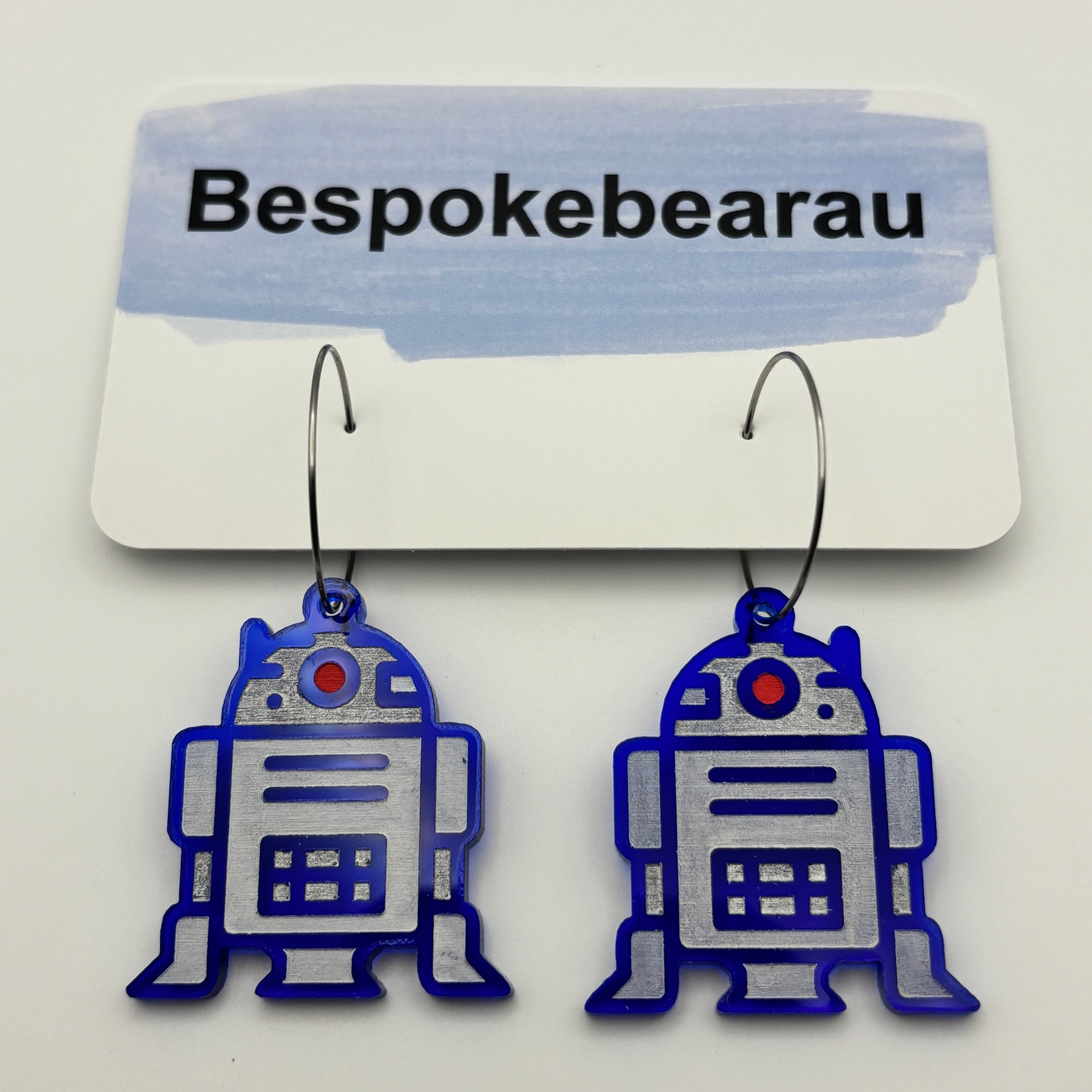 R2D2 Hoop Earrings | Surgical Stainless Steel & Acrylic | Durable & Lightweight | Handmade Hoop Design | Hand Painted